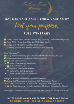 I have been described as being ‘angelic by nature’. I am known for reflecting this energy throughout the therapeutic offerings. As the creator and owner of Feathers From Heaven, I’ve infused the atmosphere with a sense of serenity and quality which is the foundation of the wellbeing treatments on offer.